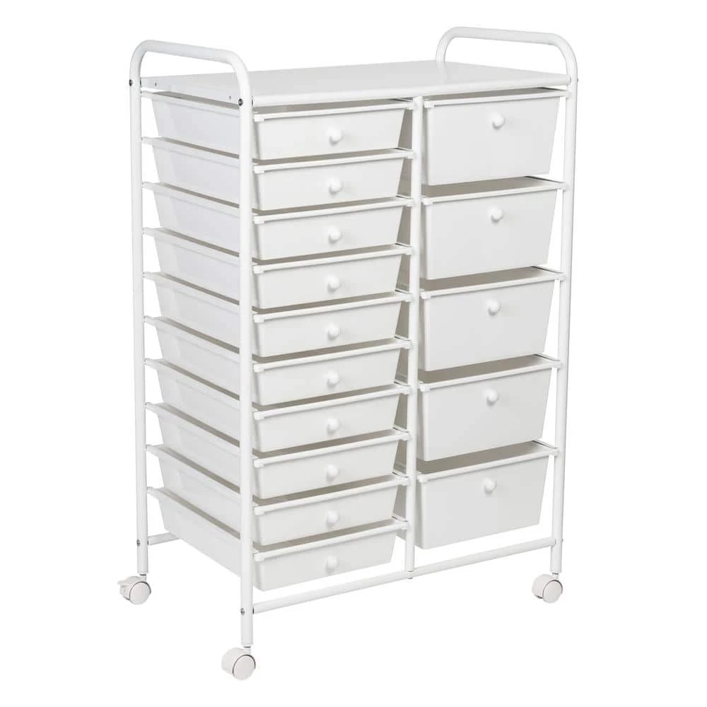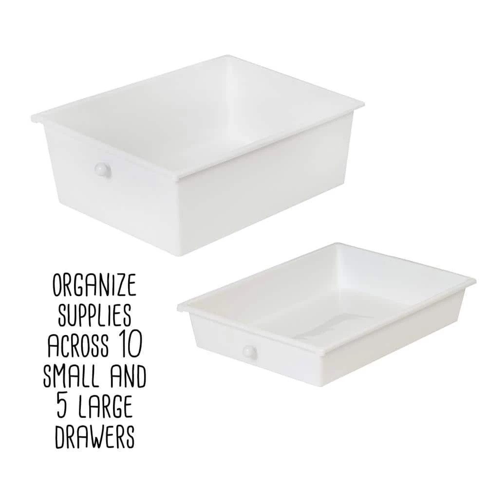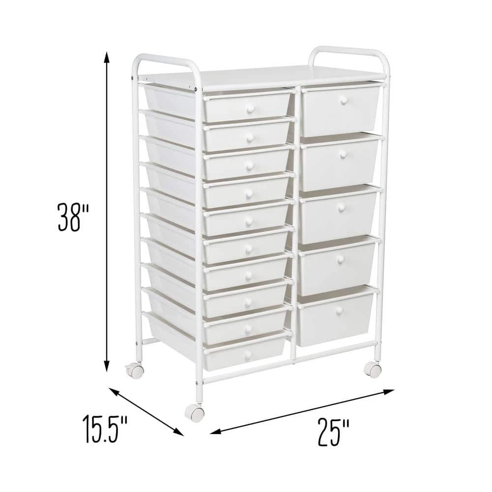 - Overall cart dimensions are 24.8 in. W x 15.3 in. D x 37.8 in. H; small drawers measure 11 in. L x 15 in. D x 2.75 in. H; large drawers measure 11 in. L x 15 in. D x 5 in. H
