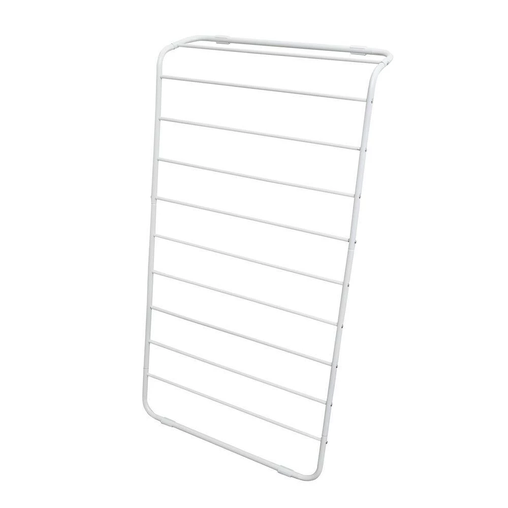 Get in and out of laundry quickly with this leaning clothes drying rack. Simply pull it out and marvel at its 18 lin. ft. of drying space for all your clothes drying needs. It holds up to 20 lbs. and slips right back into its storage spot when you’re done with it. This highly functional item will have you whistling while you work.