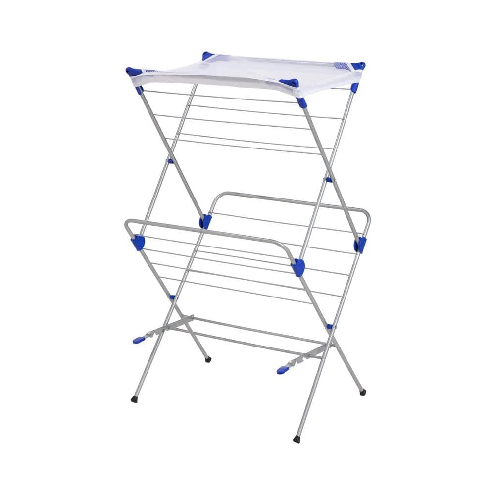 Your favorite red sweater you bought in Croatia once told you, in be gentle with me. in. That’s why you looked for the best way to dry clothes indoors before settling on this two-tier Foldable Drying Rack with Mesh Top. It scales up to 40 inches tall when expanded, but is still lean enough to fit into the narrowest nooks of your apartment. Use all 18 rods to drape and dry scarves, tops, and lingerie-but reserve the mesh deck for your sweater so it can enjoy premium ventilation. And when your knitted red beauty turns to you and says, in. This is the best drying rack I’ve ever experienced, in. you can nod your head knowing, yes, this indoor drying rack is pretty green, too.