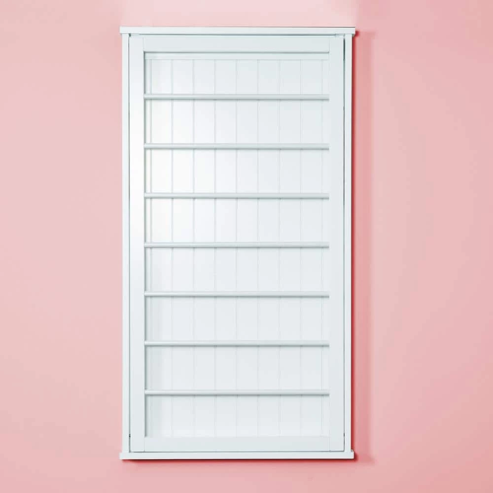 Free up precious floor space with this sleek, wall-mounted double drying rack. Hanging bars fold flat when not in use and can hang at 45 or 90 degree angles. White finish matches any decor and looks inconspicuous when not being used.