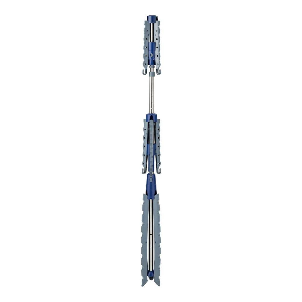 This tripod clothes drying rack is for people who like to line-dry clothes, but who don’t like the line aspect of the process. A clothes line can impart awkward creases onto a sweater or shirt. Or if a breeze blows, a delicate camisole can fall off the line, crumpling into a wrinkled heap on the floor. With this 2-tier tripod drying rack, both of those scenarios are unlikely, since the rack doesn’t rely on a line; but rather, smooth ridges that cradle up to 30 hanger hooks. If a button-up shirt is firmly fixed on a hanger, then it should remain firmly afloat, fluttering in the breeze nearly 6 ft. off the ground from the rack’s extendable top tier. When the drying is done, the rack neatly collapses for easy storage.