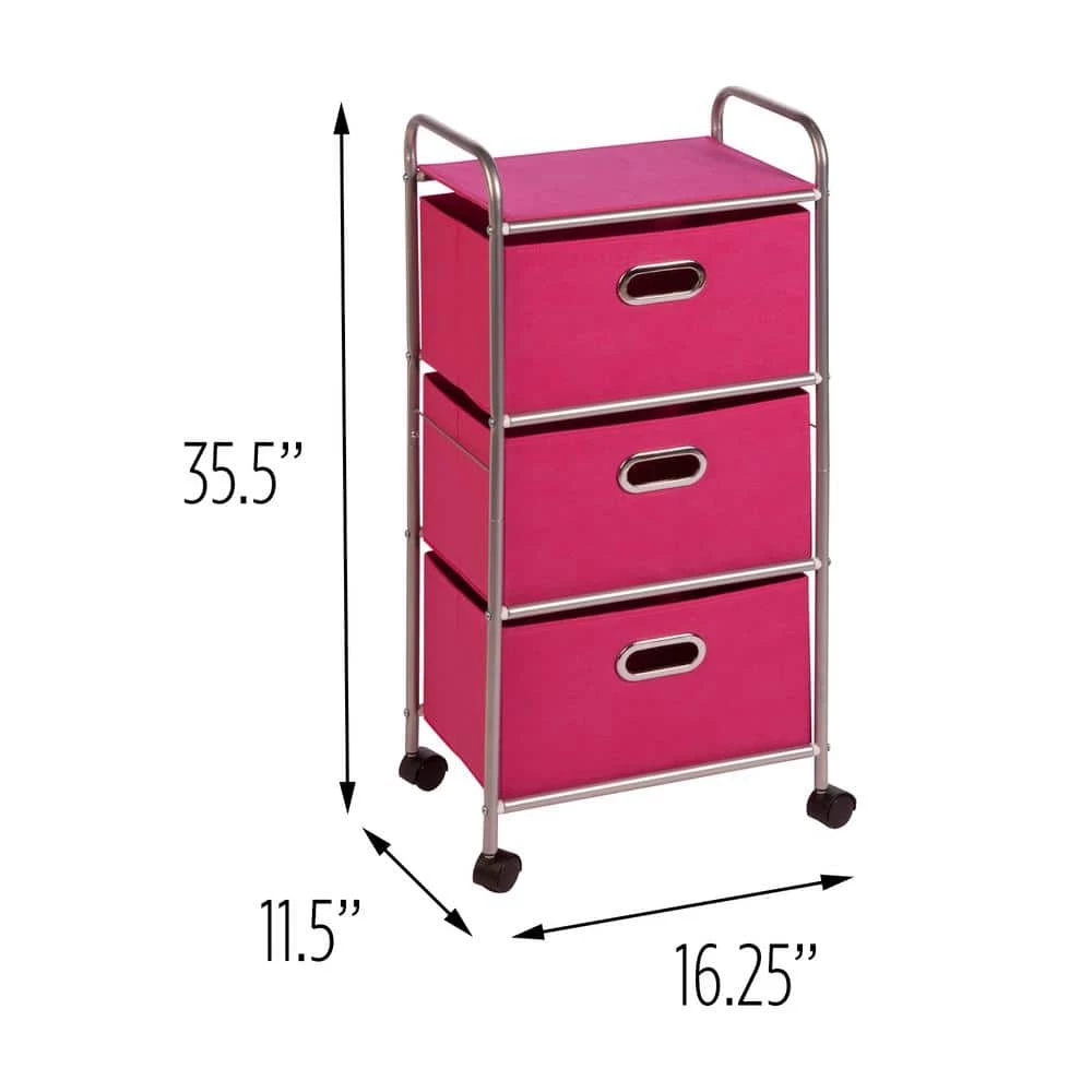 Getting organized has never looked better with this impressive fabric cart. The smooth rolling storage unit has 3-spacious drawers to hold clothes, tools, or anything else you need tucked away. A soft top surface provides even more storage space, and can double as a night-stand. 2-locking wheels keep the cart securely in place as needed, and unlock for easy maneuvering around the room.