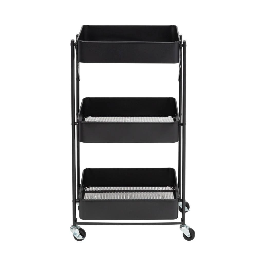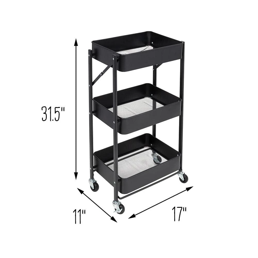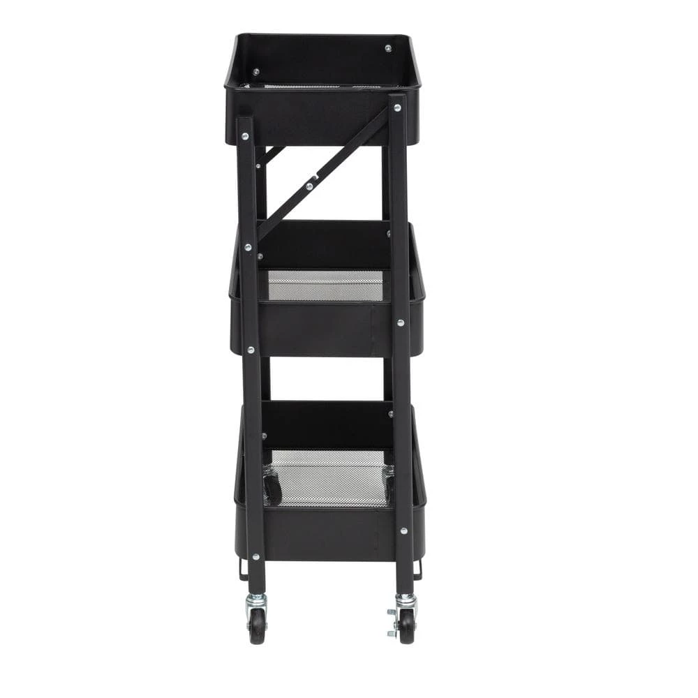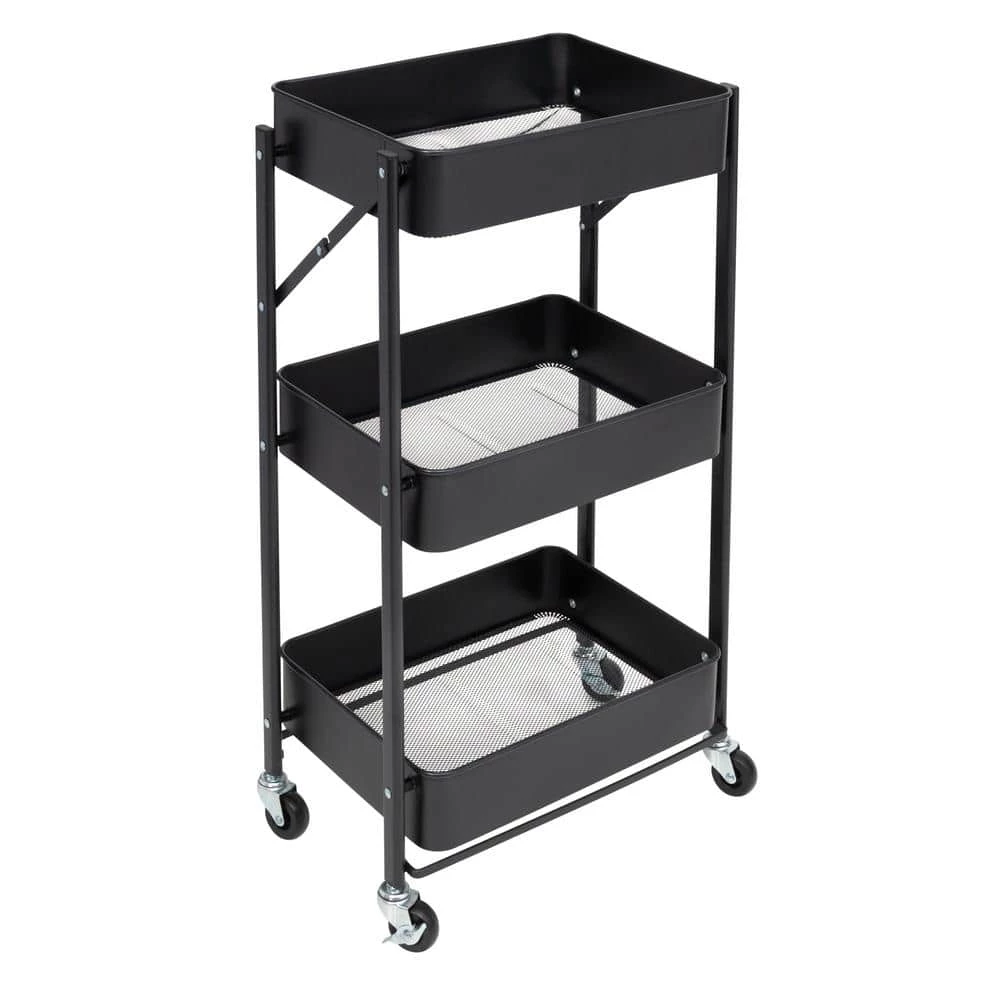 Welcome to the metal folding cart that knows how to tackle big jobs. Whether this 3-tier rolling cart is taking on the role of a sleek black bar cart serving drinks or a mobile craft cart for the budding artist, it has all the storage and strength needed to complete the task. Its sturdy metal shelves shaped like trays ensure nothing rolls off when it’s in motion. Additionally, its collapsible design means it is compact enough to store anywhere from behind the sofa to under the bed. It is the folding wheeled cart that every home needs for a boost of function.