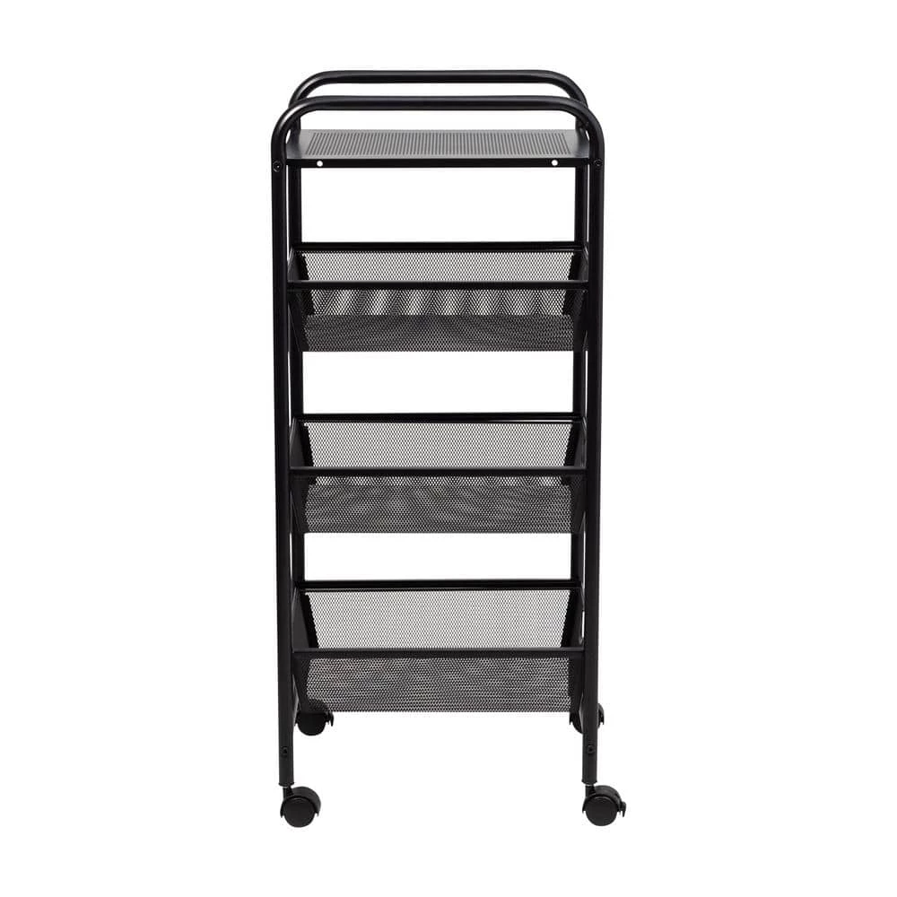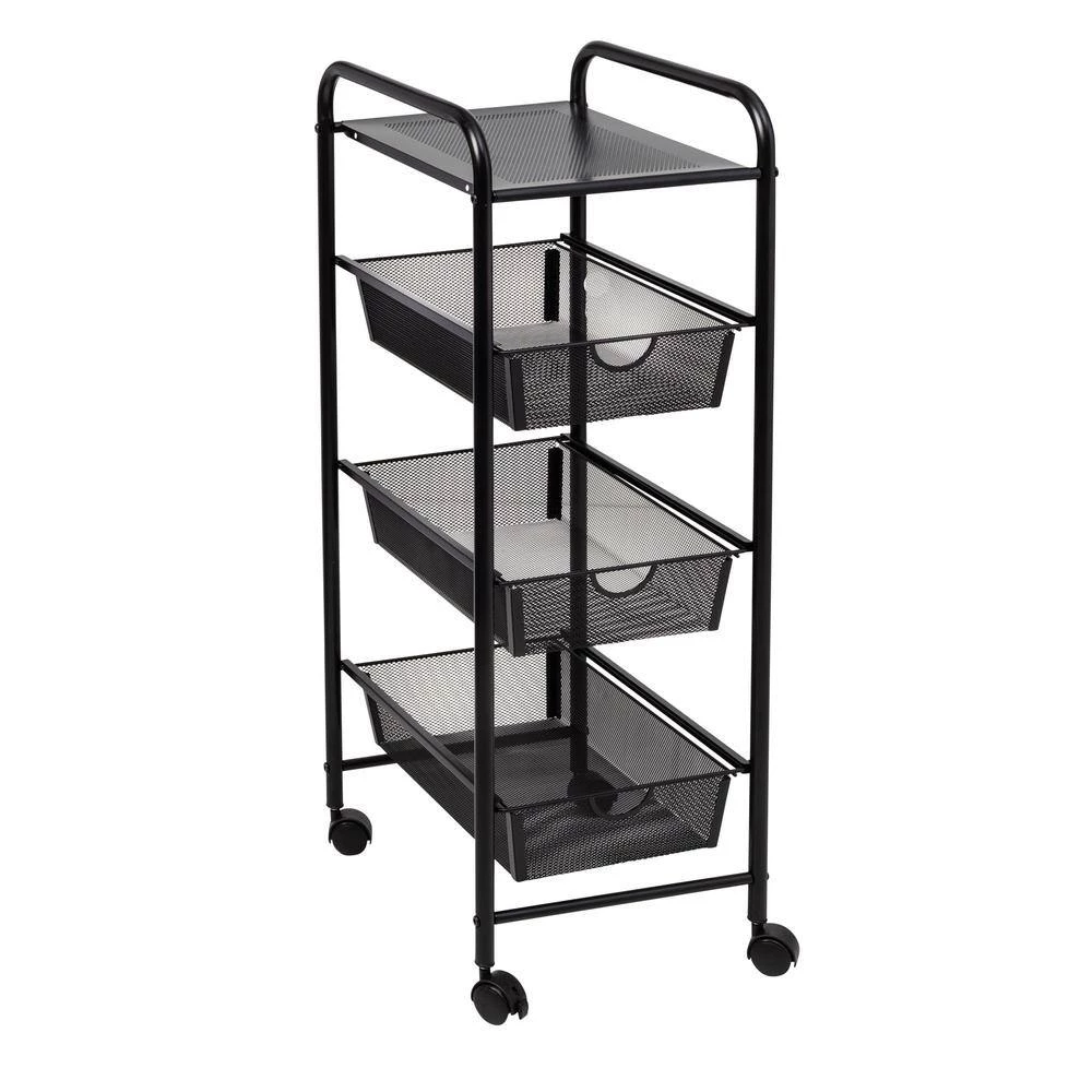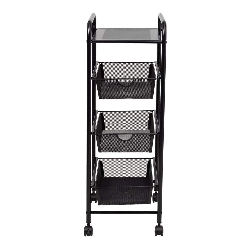 You can kiss the days of laying tall items down in drawers goodbye with this metal rolling cart. Fitted with 3 drawers with an abundance of headspace, there is plenty of room to stand up everything from hair products to condiment bottles in these spacious metal drawers. And you’ll never have to guess where you stashed away something thanks to the open mesh drawer design that provides easy viewing. With the addition of the top shelf, this rolling cart becomes a true organization hero. Whether rolling in to save your home office from chaos or gliding in to organize your kitchen, this sleek metal organizer with drawers will get the job done and push you one step closer to the tidy home of your dreams.