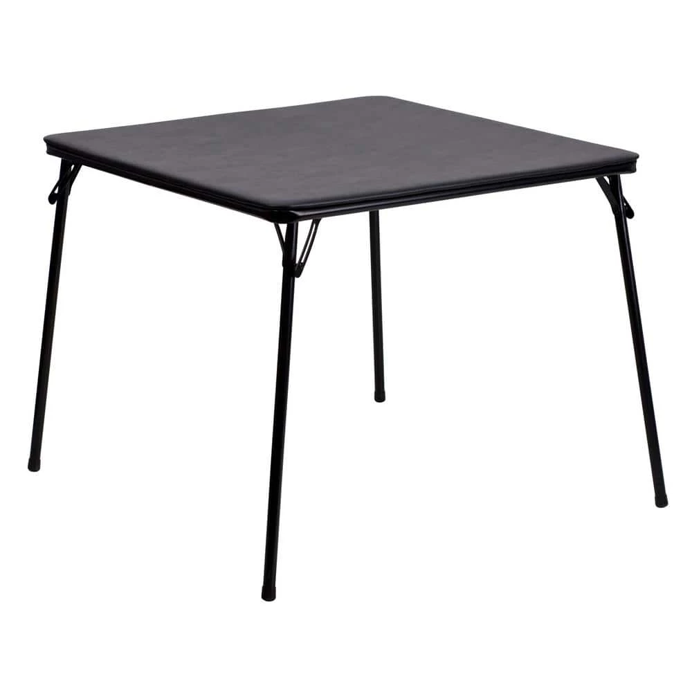 Create more room for guests instantly with this convenient square black folding card table. It’s the perfect way to provide extra seating when you need it. This table is perfect for everything from weddings, baby showers and banquets to game nights with family and friends or that 1,000 piece puzzle you’ve wanted to tackle. The versatility of this piece makes it perfect for any occasion. The foam padded top is perfect for preventing cards from sliding off of the table. This table can be used for gatherings, arts and crafts or extra dinner seating and is a wise investment for any catering or hospitality business. When no longer in use, fold the legs in and store away.