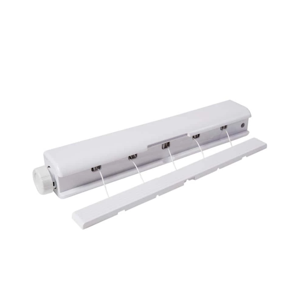 Honey-Can-Do DRY-01626 5-Line Extendable Clothesline, White/Gray. This 5-line extendable clothesline features an automatically retracting line for quick and effortless storage. The sturdy nylon lines are easy to clean and extend out 10 feet for use indoors or outdoors. Perfect for use in the laundry room, bathroom, or balcony. Dry dozens of items at once with a combined 68 linear feet of drying space! The no tool assembly makes setup a breeze. Installation is required.
