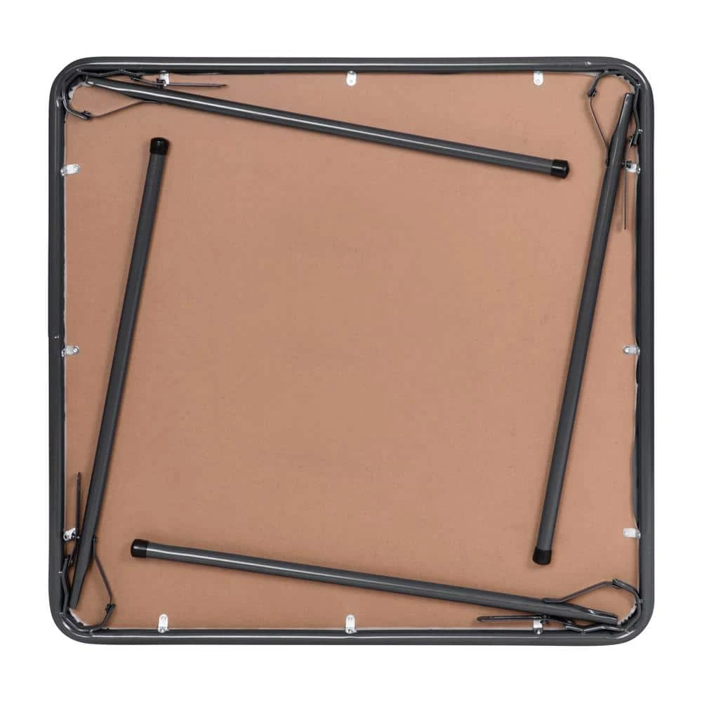 - Square folding table: 33.5 in. W x 33.5 in. D x 27.75 in. H