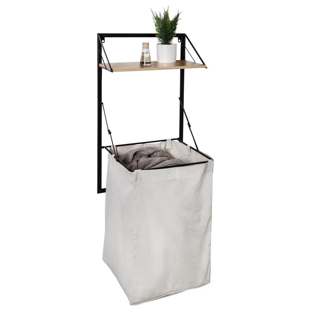 Get ready to put the “fun” in functional! If you can’t score a basket throwing your dirty clothes at this laundry bag, the style and versatility are a win in itself. A black powder-coated frame, detachable canvas bag, and wood shelf intertwine to create this timeless design. Toss your dirty clothes in the fabric hamper and place your laundry detergents on the top shelf. Or harmonize this piece with the rest of your decor by adorning the top shelf with accessories like plants and books for a cozy touch. It comes with hardware to make it a wall-mounted hamper or an over-the-door laundry basket. Both options keep your floor clear while taking advantage of unused vertical space.
