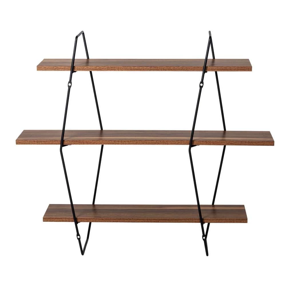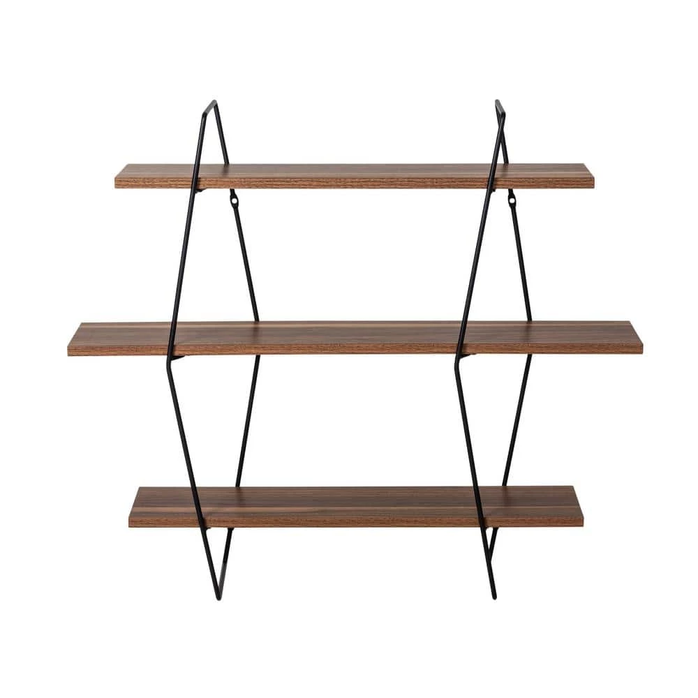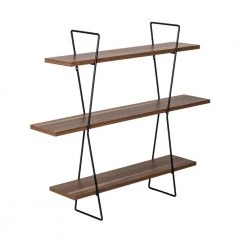- Sturdy steel brackets support shelves of engineered wood in a natural finish