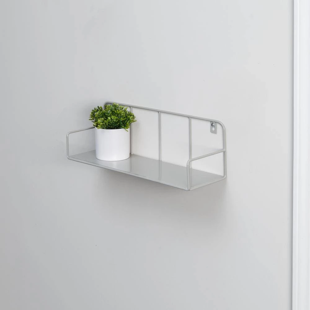 Whether you need a floating shelf that hangs behind the door or on the wall, this modern floating shelf is up to the task. The sturdy all-metal build is perfect for organizing the laundry room, boosting kitchen storage, or adding display space to any room. Plus, it looks utterly fabulous while doing it. The soft curves juxtaposed by sleek lines combine for a design that is as wow-worthy as it is versatile. The curved side bars are a particularly wonderful feature that ensures items like books and beauty products don’t tip off the edge. Easy to hang and made to last, this is the modern gray shelf that your decor has been craving.