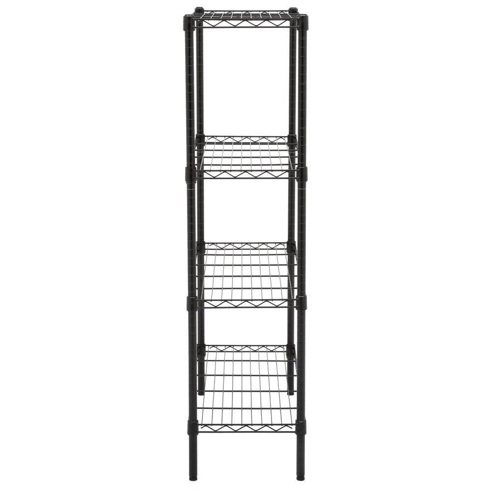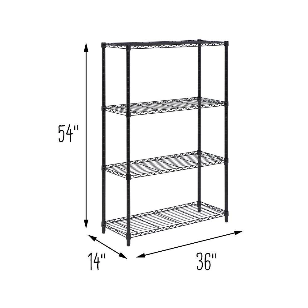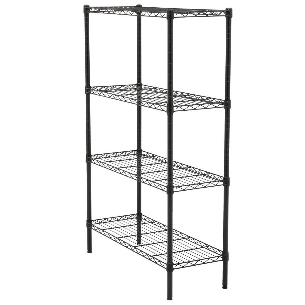 You love the versatility of shelving, if your shelving is versatile, that is. Well, it most certainly is with the heavy-duty 4-Tier Shelving Unit in Black. Maximize storage in any room of the house with this durable unit that can hold up to 350 lbs. per shelf. Adjustable shelving heights is convenient for when shelving needs change or oddly-sized items arrive, like the large aqua deer statue that he just “had to have” from his last guys’ trip… hint, it’s going in the garage Commercial-grade certification makes this the perfect kitchen, garage or closet shelving unit. Your shelving needs to keep up with you – we make sure it does.