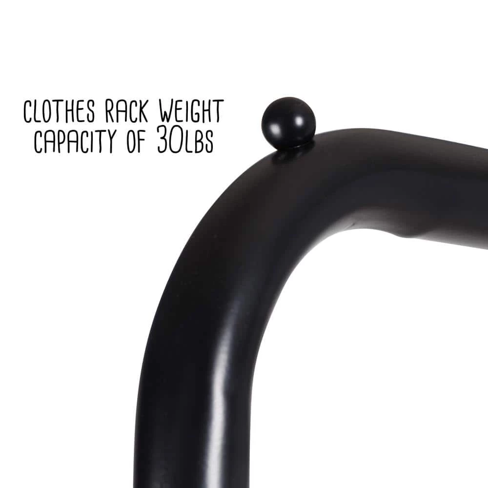 - Total clothes rack weight capacity is 30 lbs.; capacity per shelf is 10 lbs.