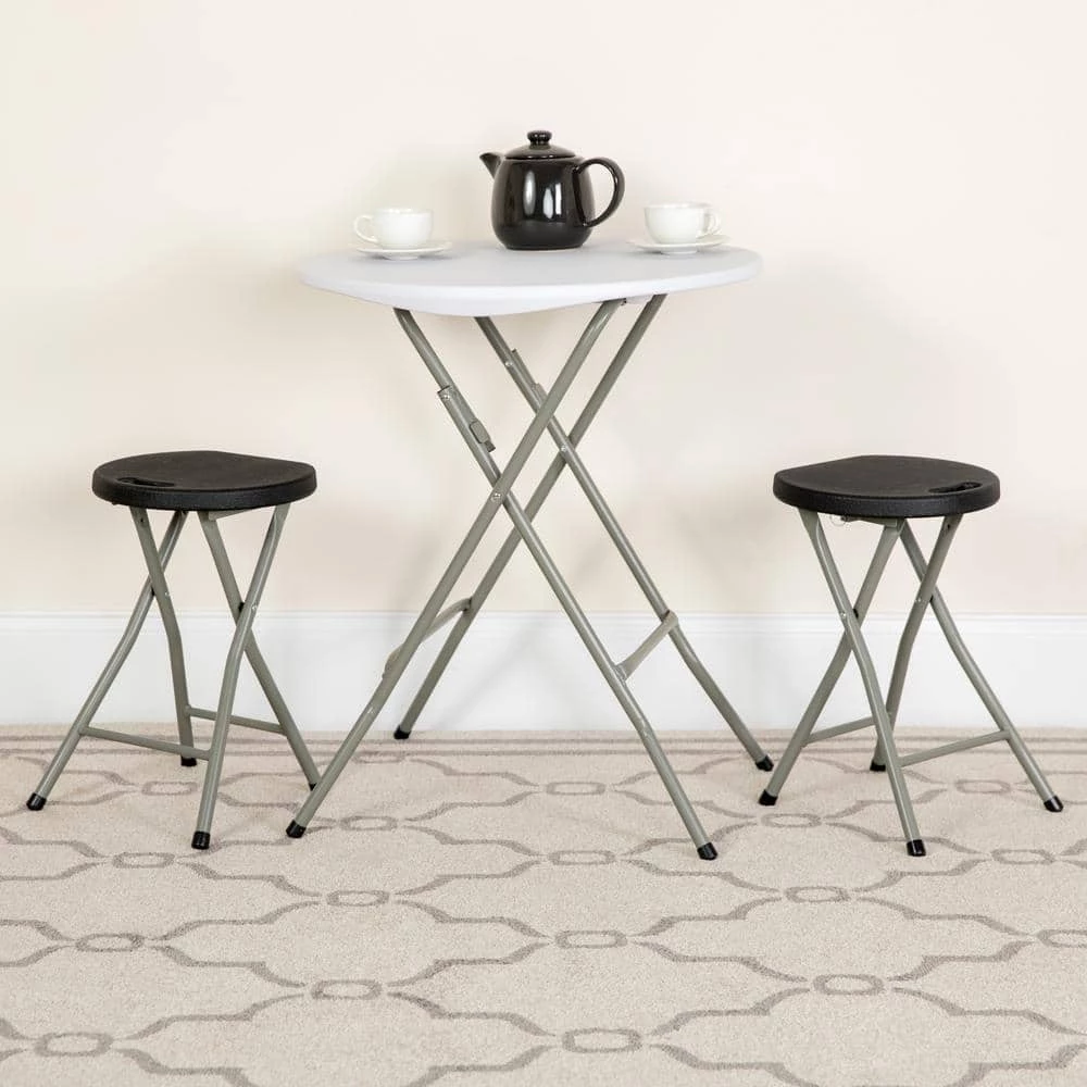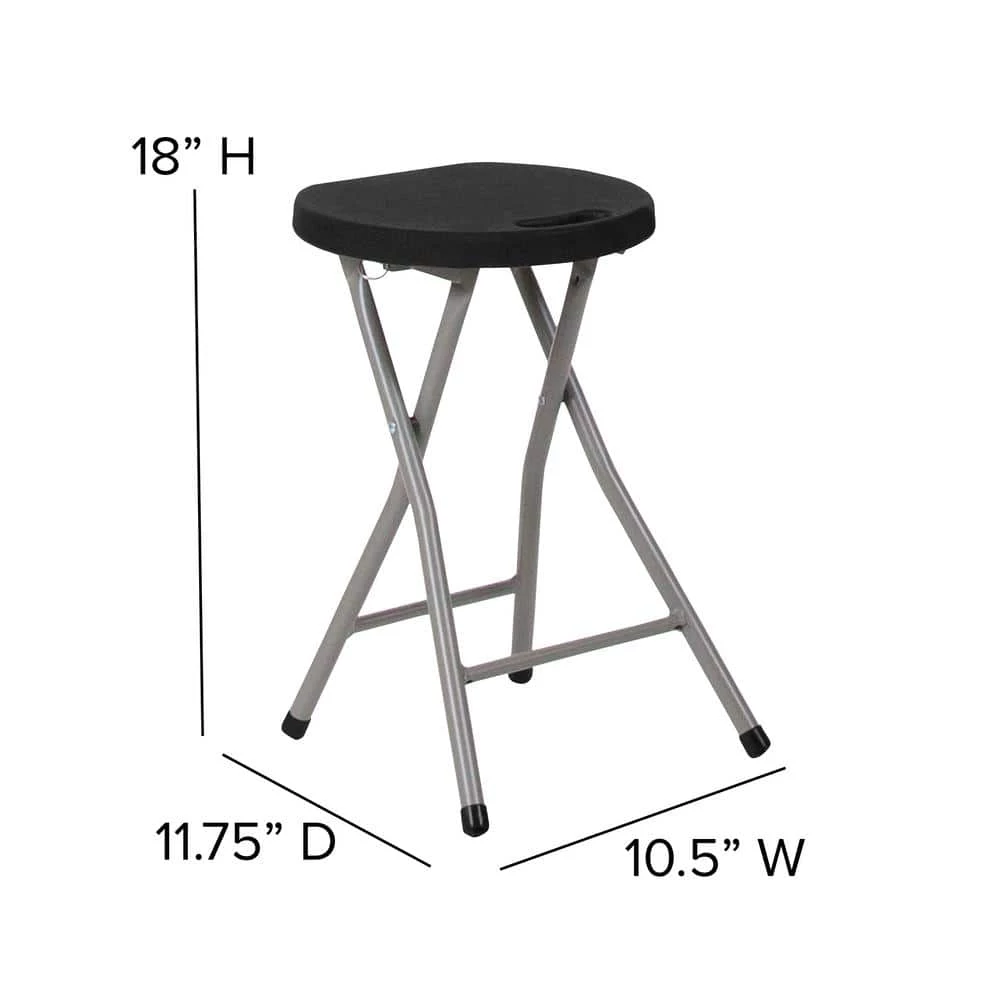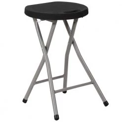 Need a convenient stool seat at a moment’s notice. This Foldable Stool with Plastic Seat is here to serve and is perfect in the home, classroom or on the go. Foldable legs make for easy storage and setup at a moment’s notice. Thick acrylic plastic forms the seat, boasting a bold black color. When not needed, the stool folds up flat for storage. This backless stool is ideal for unexpected guests at home, holiday seating or commercial use.