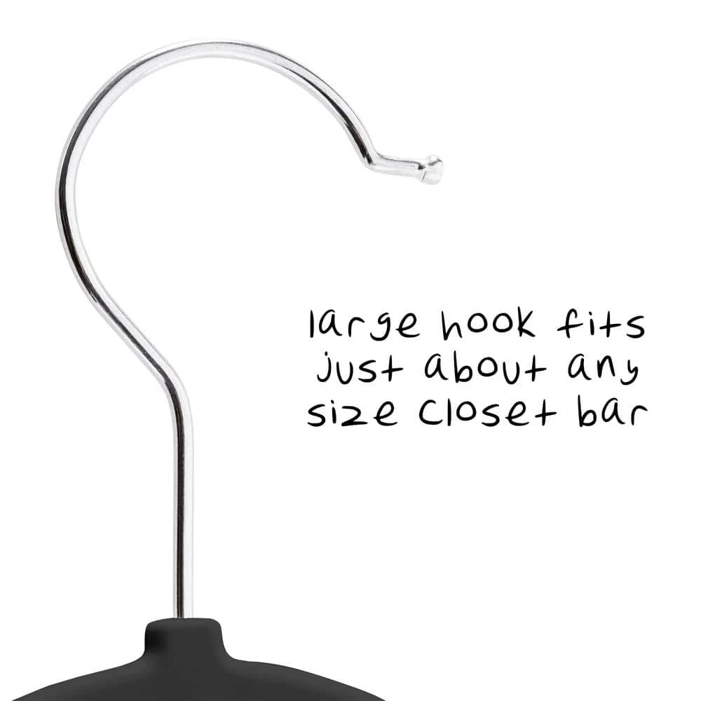 This 50-pack of low-profile black closet hangers gives you more space in your closet so and keeps you clutter-free. No-slip rubber material holds clothes held in place, yet makes them easily accessible to pull down and throw on. Hang up your Saturday night best with confidence.