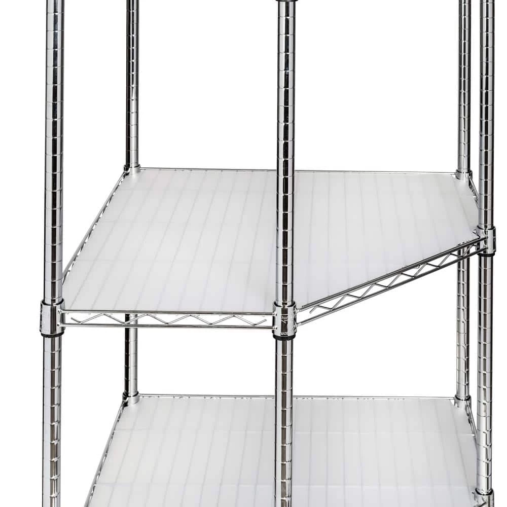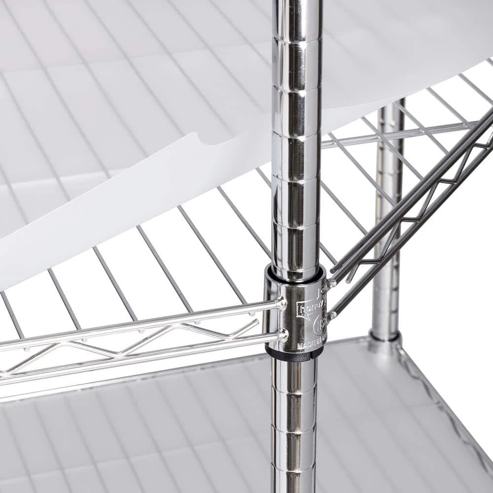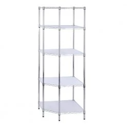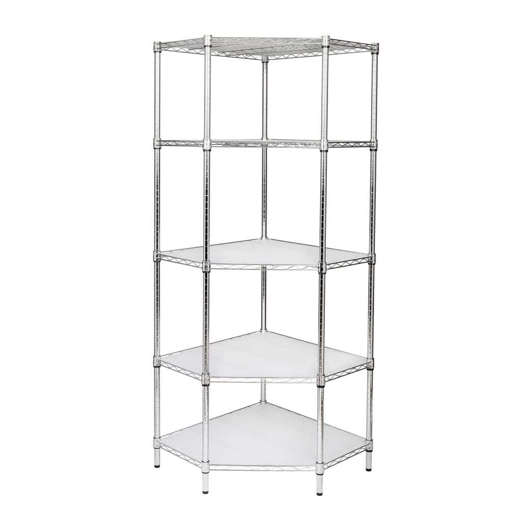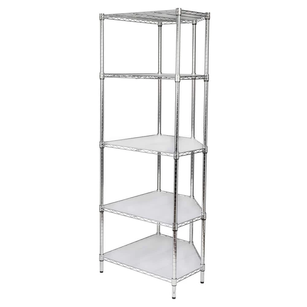 Organize your space with this Chrome 5-Tier Corner Metal Wire Shelving Unit (18 in. W x 72 in. H x 27 in. D). This is a durable option for your storage needs. Each shelf can hold up to 350 lbs. Place this shelving unit in your garage, commercial kitchen or other spaces. A smart design makes it easy to fit this shelving unit in a corner space.