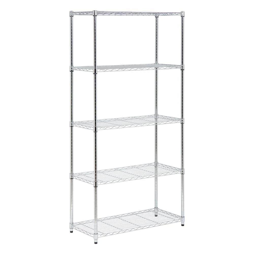 You are looking for a shelving unit that is versatile – that could serve as garage shelving or kitchen shelves. You need adjustable shelves for when your storage needs change or that oh-so-random item comes home and doesn’t fit on the shelves as-is. Well, your shelving ideas are just a click away. This 5-Tier Adjustable Chrome Storage Shelf is all that and more, with the ability to hold up to 350 lbs. on each shelf and a steel frame construction that gives it industrial quality, making it the perfect kitchen, garage or closet shelving unit. And if you want to move it around, you can purchase wheels that will give you the portability you need, with the functionality and style you desire.
