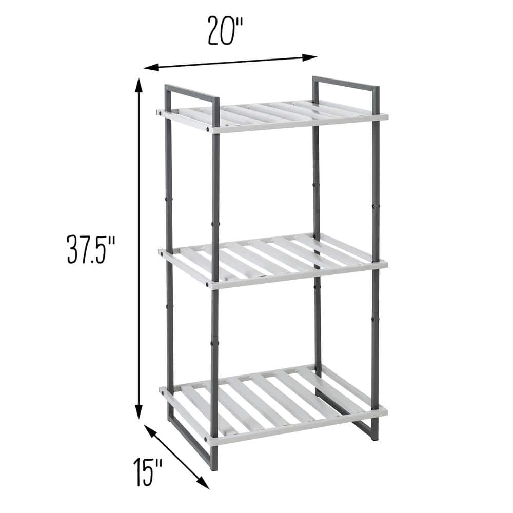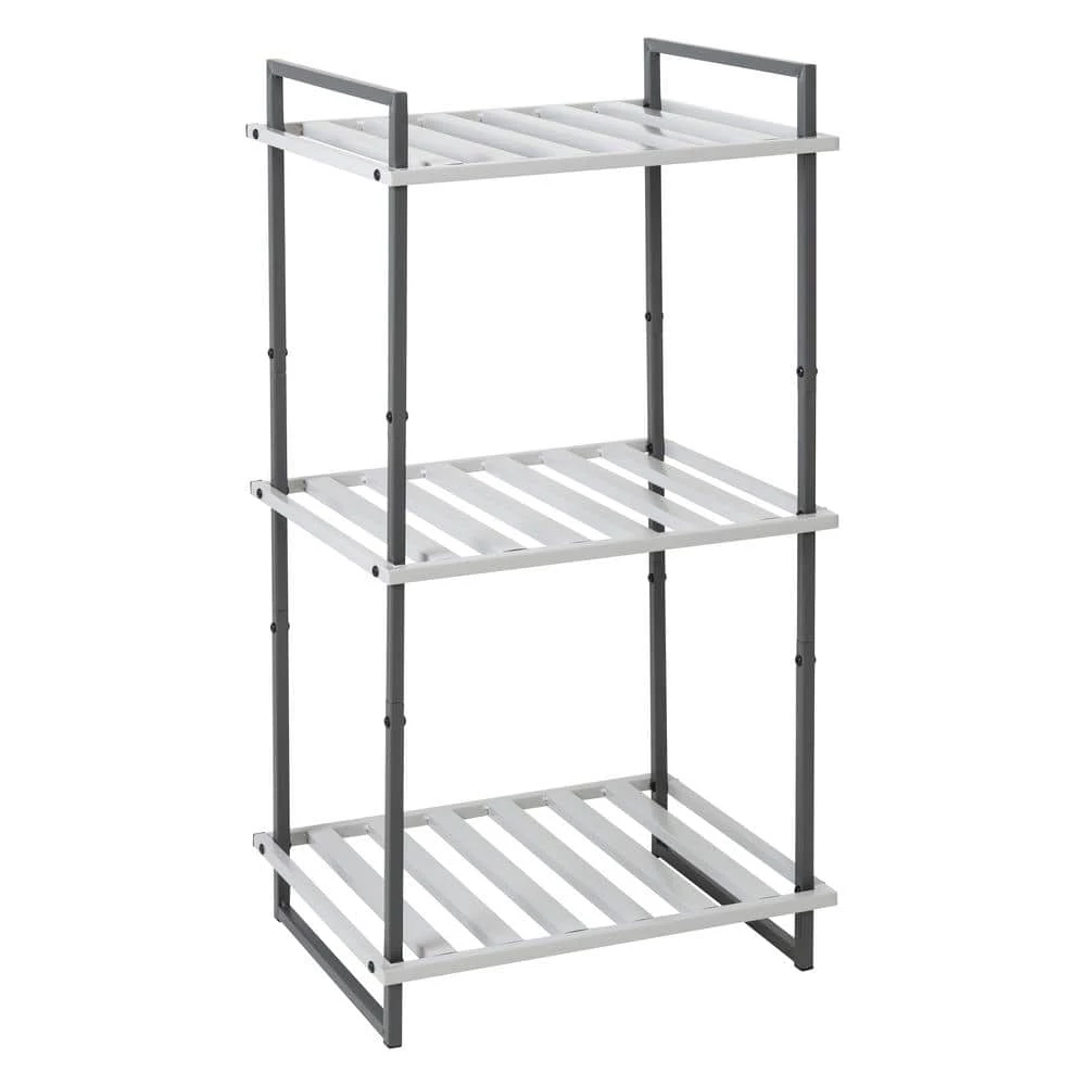 We’ve all experienced those panicked moments. Those split seconds when after a glance cast side-to-side, there was no sign of a fresh roll of toilet tissue. Escape those brief moments of terror with this metal bathroom shelf. It’s a stylish and practical home for a woven storage basket that holds nothing but spare TP. No cabinets to search, no closets to explore. With three slatted metals shelves, what you see is what you get. And for this bathroom shelf, what you see is a contemporary metal tube design finished with cool contrasting gray tones. It’s a piece that’s subtle, yet hard to miss, which is pretty clutch in the case of certain bathroom essentials.
