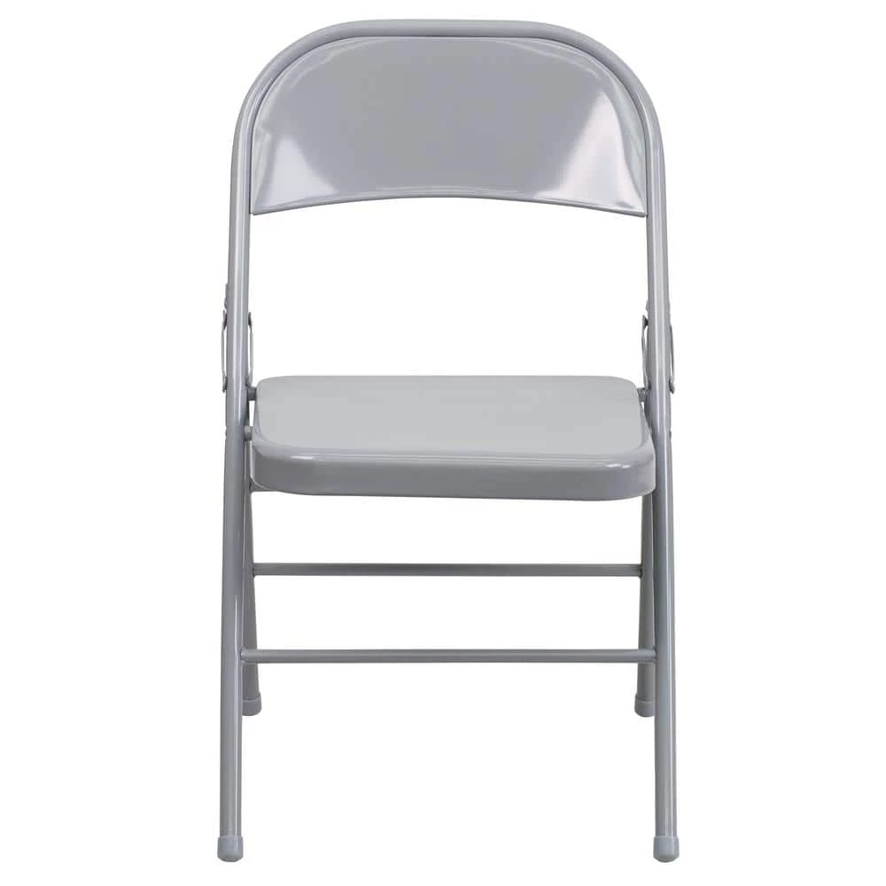 This durably constructed Metal Folding Chair is a convenient option for everyday use or extra seating in a residential or commercial setting. It features a premium 18-Gauge, curved steel frame. The legs are triple braced, with an integrated footrest, and Double Hinged with Riveted steel components. Though lightweight and easy to fold, transport and store, it’s sturdy enough to hold up to 300 lbs. Non-marring floor glides on the legs protect your floors from scuffs and scrapes by sliding smoothly when you need to move the chair. Designed for indoor and outdoor use, these attractive chairs are a smart seating solution for your next business meeting or special event.