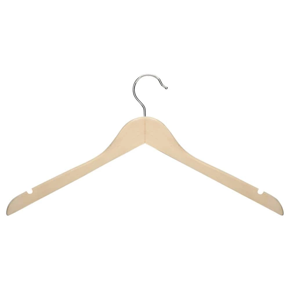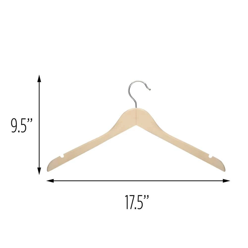 Why mess with a classic? These traditional maple hangers are a timeless way to hang tops and keep closets organized. These wooden hangers are gentle on delicate clothes, yet sturdy enough to support a sportscoat with or without pockets full of emergency snacks. Notches in the arms keep sleeveless tops and dresses from slipping to the floor.
