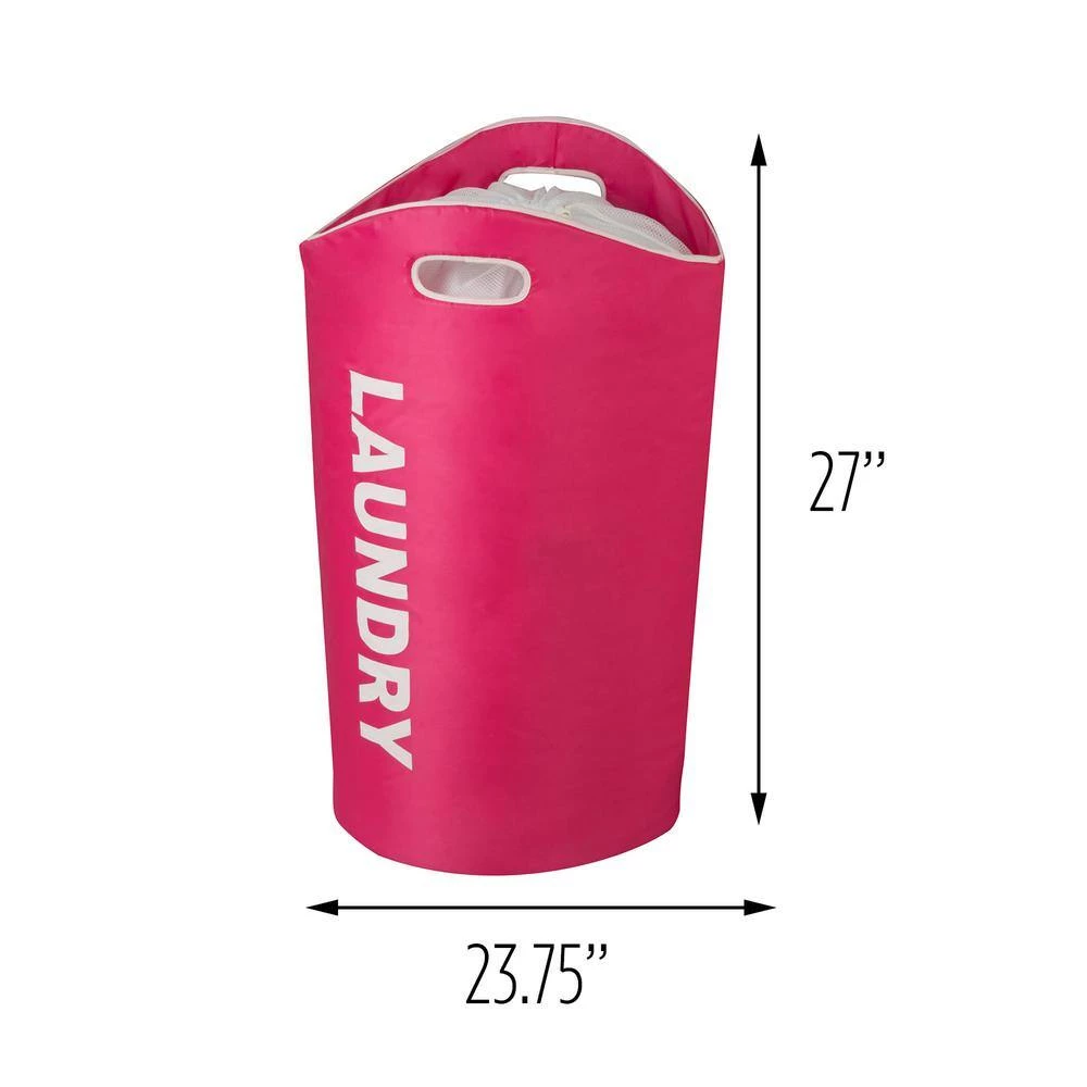 Carry your laundry in style with this brightly colored laundry tote. This always-open tote makes for quick and easy loading and unloading. The sturdy foam interior keeps the bag vertical even when it’s empty, yet it’s flexible enough to pull both handles together for one-handed carrying. A mesh drawstring closure at the top of the tote helps keep your laundry in place, and the word “laundry” is printed on the tote so you won’t forget what is inside.