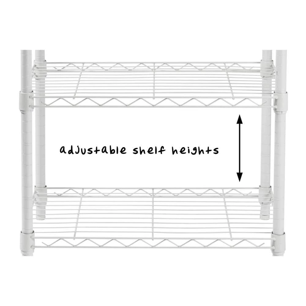 This 4-Tier Heavy Duty Steel Shelving Unit is a storage shelving solution that is a functional masterpiece. Stack up to 250 lbs. of weight on each white shelf and adjustable shelves allow you to change the configuration as your storage needs evolve. Combine multiple units to create a customized storage wall. This shelving unit can be used in the kitchen to store accessories or in the pantry to hold food and snacks. Equally important, no tools are required for assembly.
