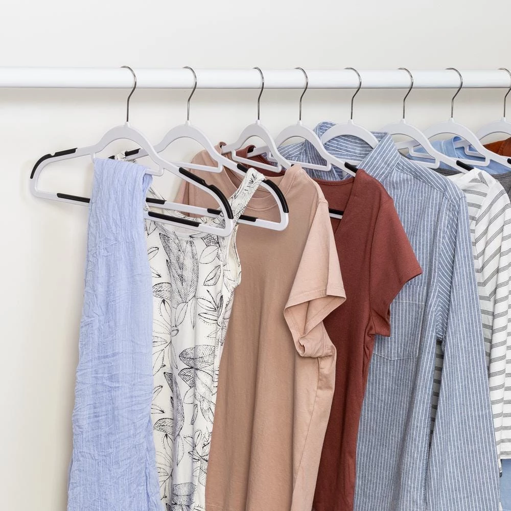Your closet just got bigger! These slim profile hangers make more space for your clothes to breathe in your closet. The rubber grip shoulders and cross-bars provide no-slip hanging for slippery blouses, scarves and more. And with this 60-pack, you will have ample amount of hangers for your entire wardrobe.