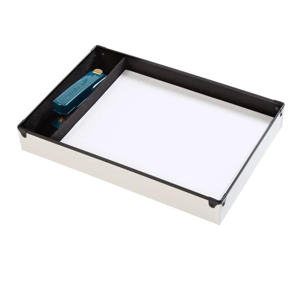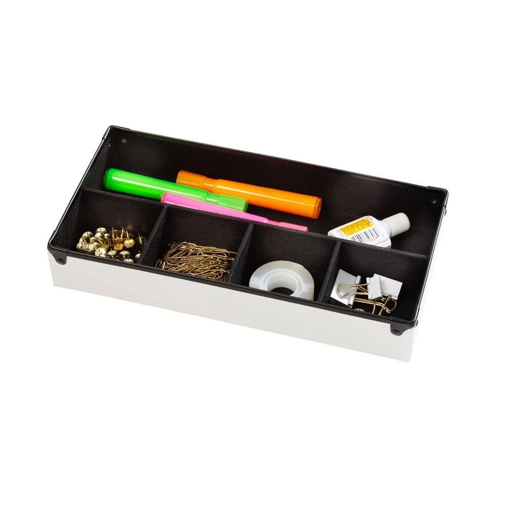 - Bullet Point 2 Includes magazine caddy, pencil cup and divided tray, XL file box, post-it holder and paper tray
